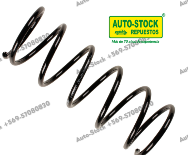 Espiral delantero: resorte de la suspensión frontal que absorbe impactos, mantiene la altura del vehículo y mejora la estabilidad y el confort de marcha.